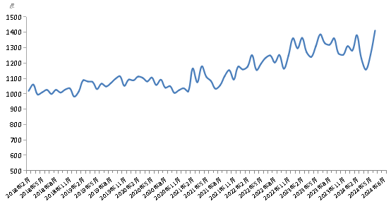 新華財經(jīng)北京7月10日電(陸子琛、馬兵)6月份,新華·中鹽食用鹽(商超)價格指數(shù)報1411.76點,較上期(2024年5月)上漲158.16點,漲幅12.62%;較基期(2018年1月)上漲411.76點,漲幅41.18%;刷新指數(shù)運行周期內(nèi)最高值;較周期內(nèi)最低點981.91點(2018年12月)上漲429.85點,漲幅43.78%。