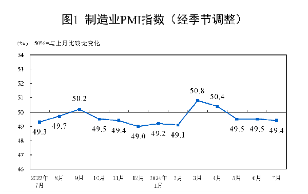 7月份制造業(yè)采購(gòu)經(jīng)理指數(shù)為49.4%