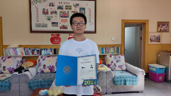 “恭喜你!這是錄取通知書?!鄙衔?點多,在兒童村大門口,于偉安和媽媽李桂英接到了郵政EMS快遞員送來的研究生錄取通知書。打開大紅信封,看著藍色的精美通知書,于偉安和媽媽高興地擁抱起來。在今年的研究生考試中,于偉安以406分的好成績考上北京郵電大學的王牌專業(yè)——通信工程專業(yè),成為兒童村的又一驕傲。