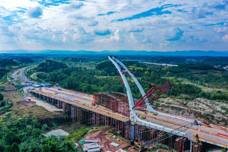 圖為中鐵重工參建的成都空港新城北一線跨絳溪河大橋鋼橋塔豎轉(zhuǎn)成功。該項目是成都首座千噸級橋塔豎轉(zhuǎn)成功的橋梁,實施過程創(chuàng)下多個全國第一。資料照片
