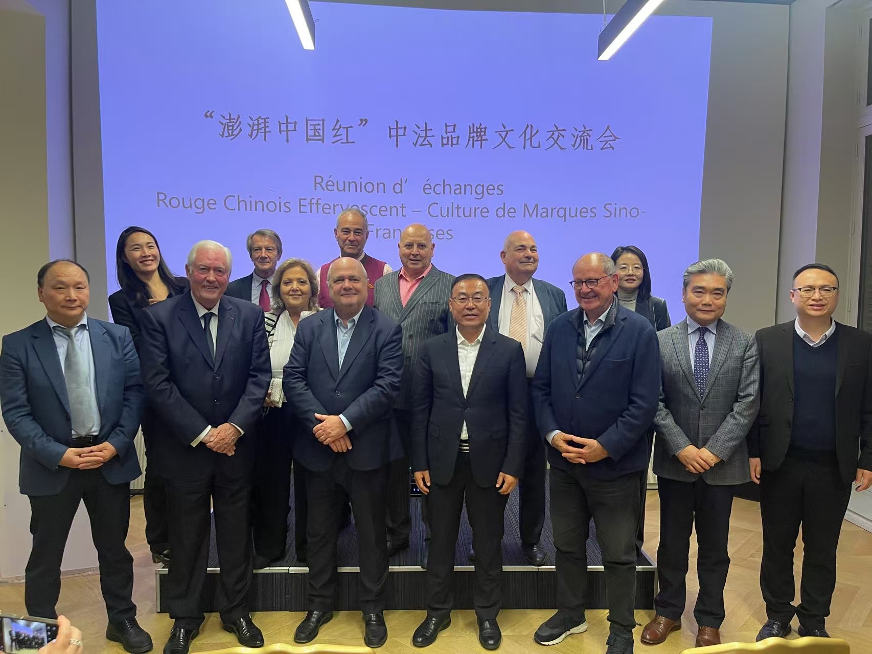 圖為“澎湃中國(guó)紅·中法品牌文化交流會(huì)”活動(dòng)現(xiàn)場(chǎng)嘉賓合影。(劉洋攝)