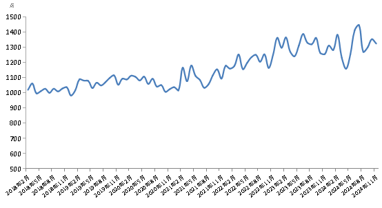 分城市來看,截至2024年11月,北京、上海、呼和浩特、重慶、南昌、蘭州、烏魯木齊、南京、武漢、長春、鄭州、西寧、貴陽、青島超市銷售食用鹽均價較2024年10月上漲;哈爾濱、濟南超市銷售食用鹽均價較2024年10月持平;廣州、合肥、西安、銀川、天津、南寧、杭州、太原、長沙、昆明超市銷售食用鹽均價較2024年10月下跌。