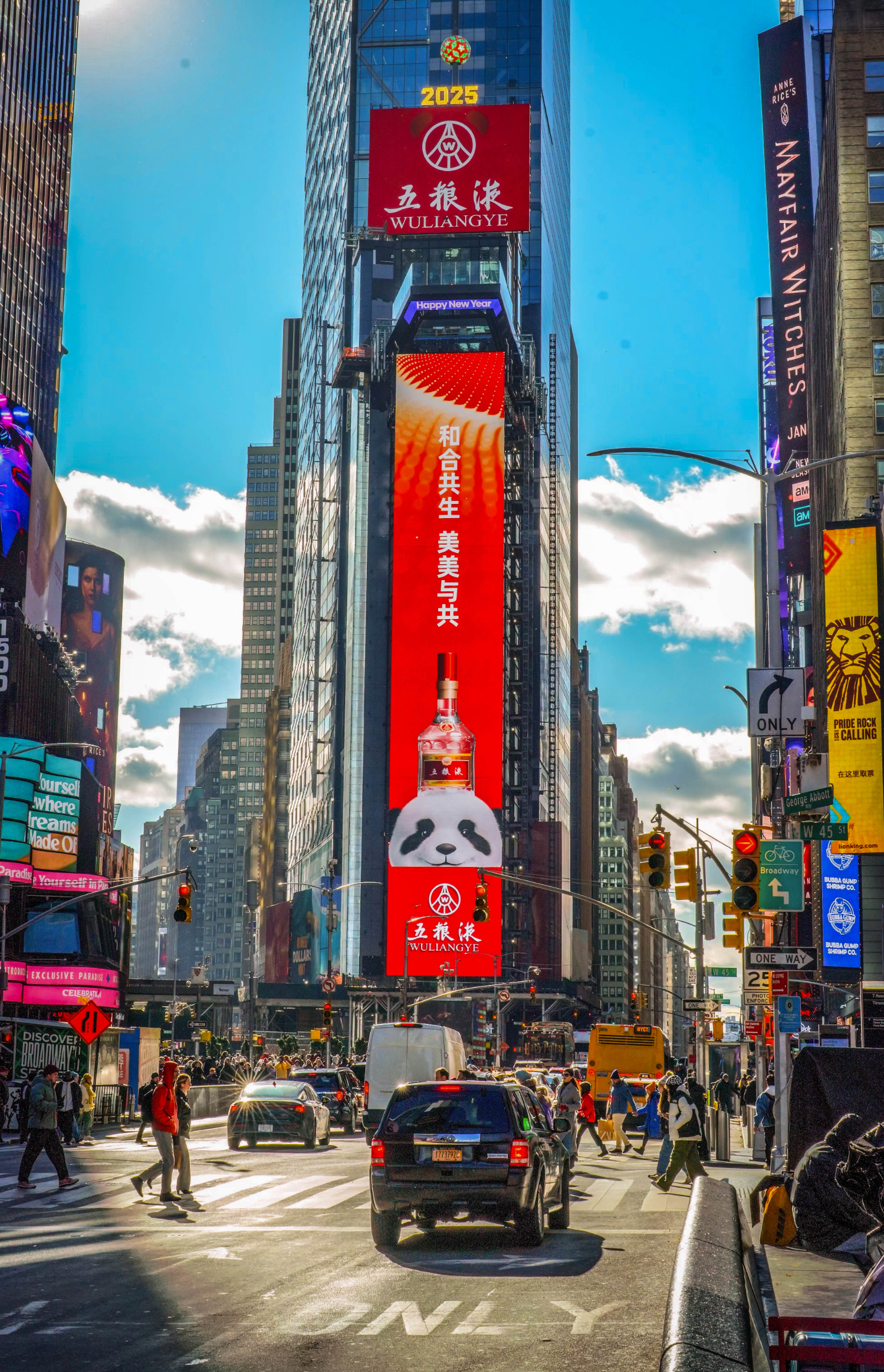 當(dāng)?shù)貢r(shí)間1月2日,美國(guó)紐約時(shí)報(bào)廣場(chǎng)水晶球大樓上,一只身著“中國(guó)紅”裝扮的大熊貓悄然亮相。這是五糧液在紐約時(shí)代廣場(chǎng)投放的首支大型3D廣告片,巧妙地融合了國(guó)寶大熊貓、五糧液酒等深受海外民眾喜愛的中國(guó)元素,瞬間吸引了全球目光。現(xiàn)場(chǎng)觀眾對(duì)這支廣告表現(xiàn)出濃厚的興趣,紛紛駐足用手機(jī)拍照留念,記錄下“和美”瞬間。