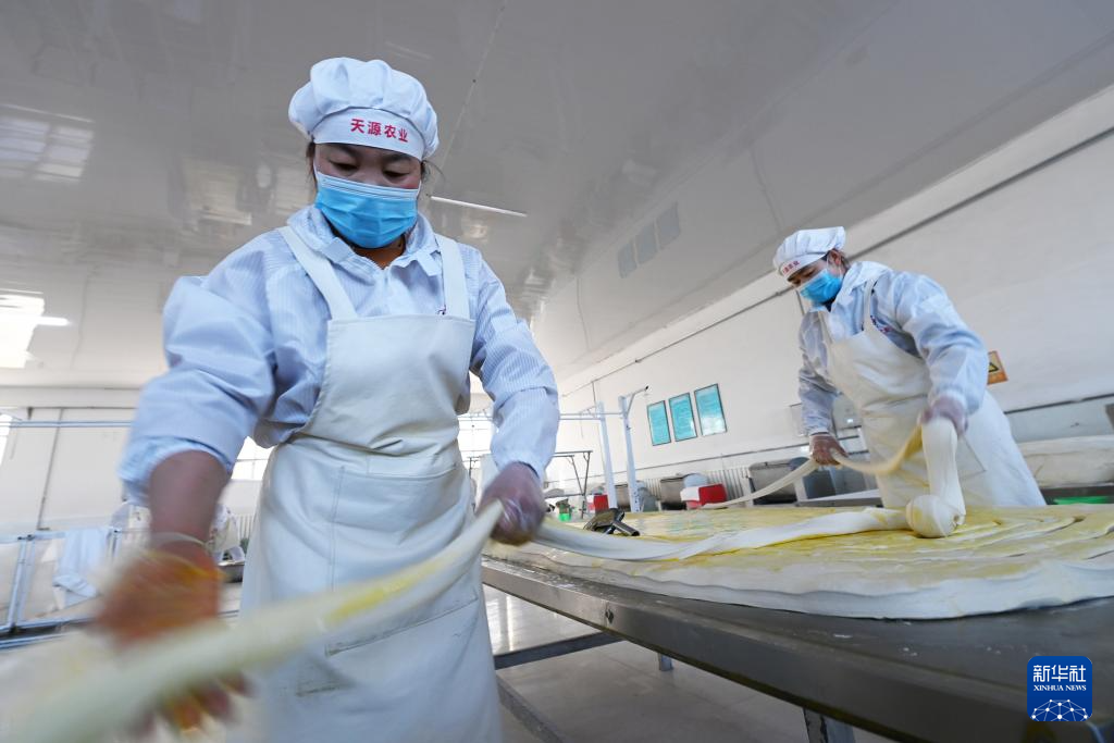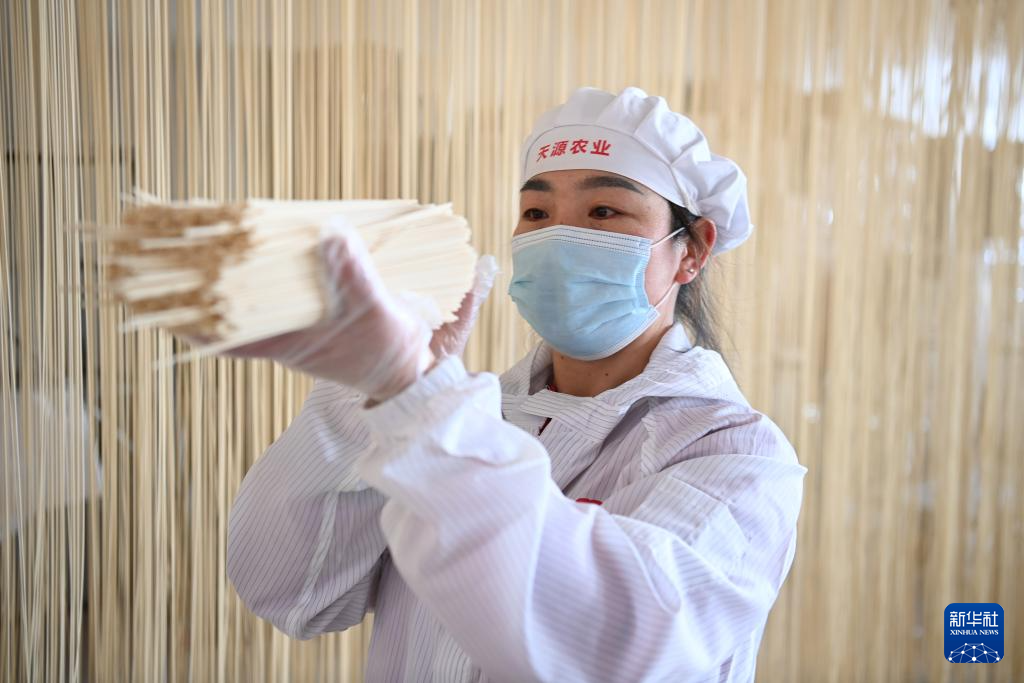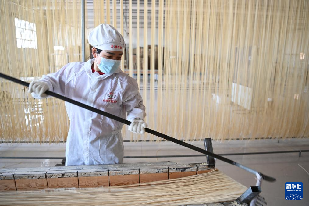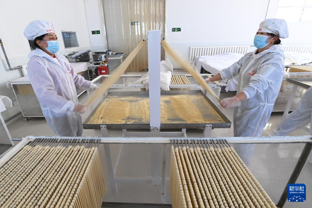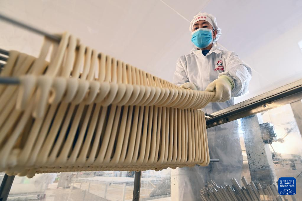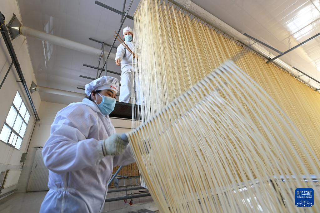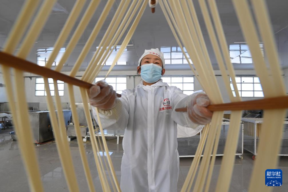 春節(jié)臨近,在甘肅省武威市古浪縣,“非遺”產(chǎn)品——古浪手工掛面訂單大增,當(dāng)?shù)匾恍┢髽I(yè)的掛面生產(chǎn)車間內(nèi),工人們抓緊制作手工掛面。古浪手工掛面歷史悠久,以國家農(nóng)產(chǎn)品地理標(biāo)志產(chǎn)品古浪紅光頭小麥面粉為原料,經(jīng)十多道工序加工而成。2024年12月,古浪手工掛面制作技藝被列入甘肅省第五批省級非物質(zhì)文化遺產(chǎn)代表性項(xiàng)目名錄。