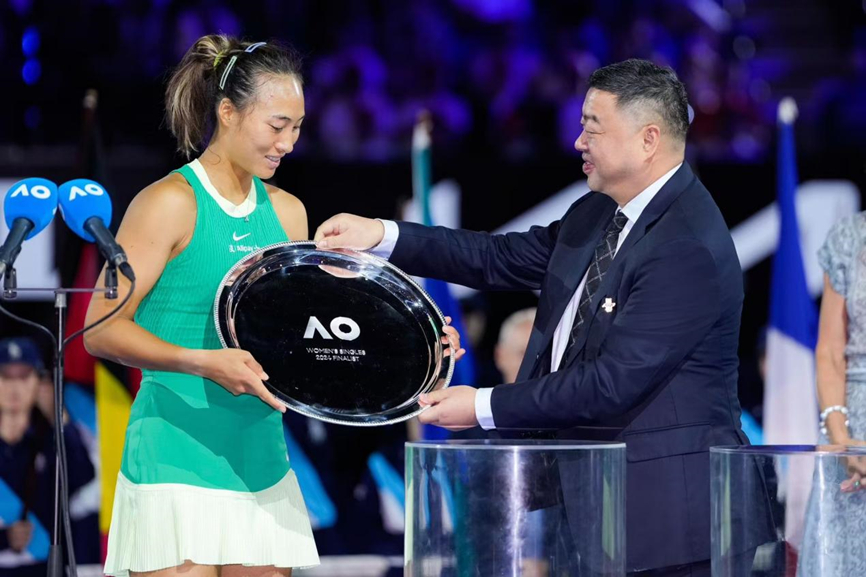 瀘州老窖股份有限公司總經(jīng)理林鋒為2024澳網(wǎng)女單亞軍鄭欽文頒獎(jiǎng)