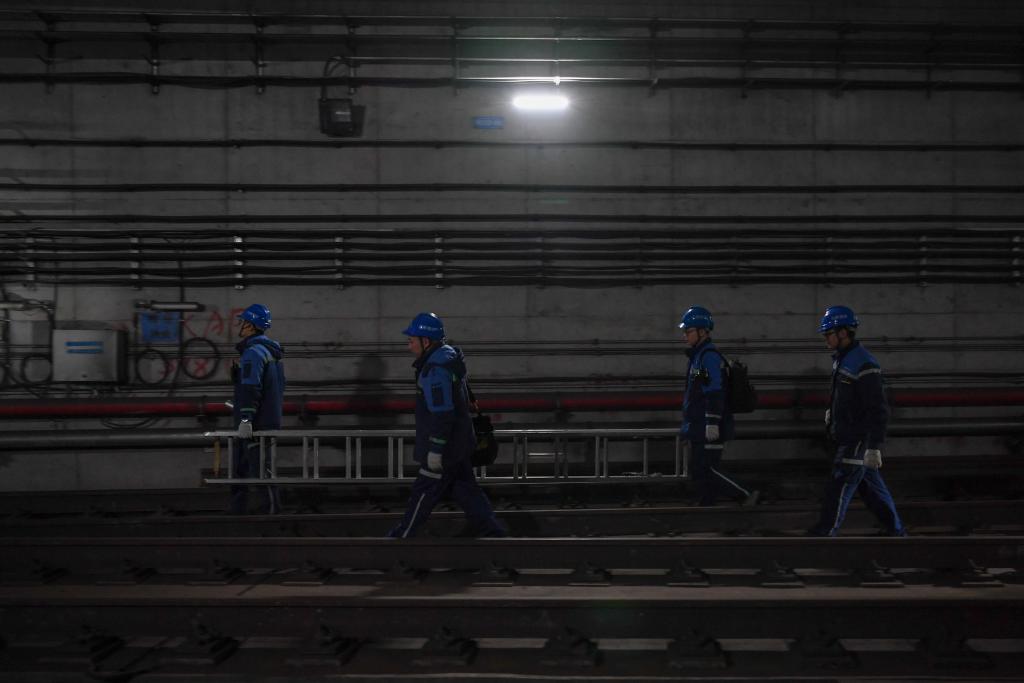 26日凌晨1時5分,在與車控室完成“清車”“停電”兩項工作對接并得到調度同意后,4人小組每人背著20多斤重的工具包,抬著5米長的梯子,下到地鐵隧道。