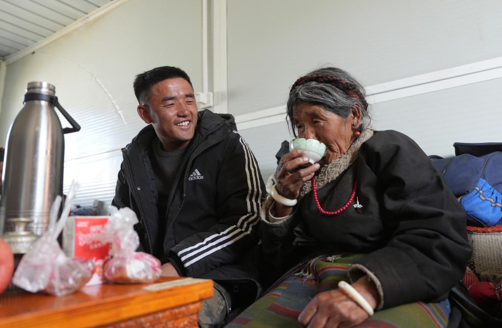 達(dá)娃次仁在救災(zāi)帳篷見到了母親次仁塔覺(jué)。這位66歲的藏族老阿媽,身體硬朗,精神矍鑠,是全家人的“精神依靠”。