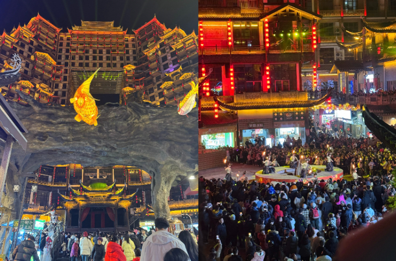 夜幕降臨,華燈初上,每晚30余場演出在被譽為“張家界文化地標(biāo)”和“夜經(jīng)濟(jì)新引擎”的七十二奇樓上演。該景區(qū)通過民俗表演、非遺體驗等多種休閑業(yè)態(tài)吸引了大批市民和游客,夜經(jīng)濟(jì)火爆。