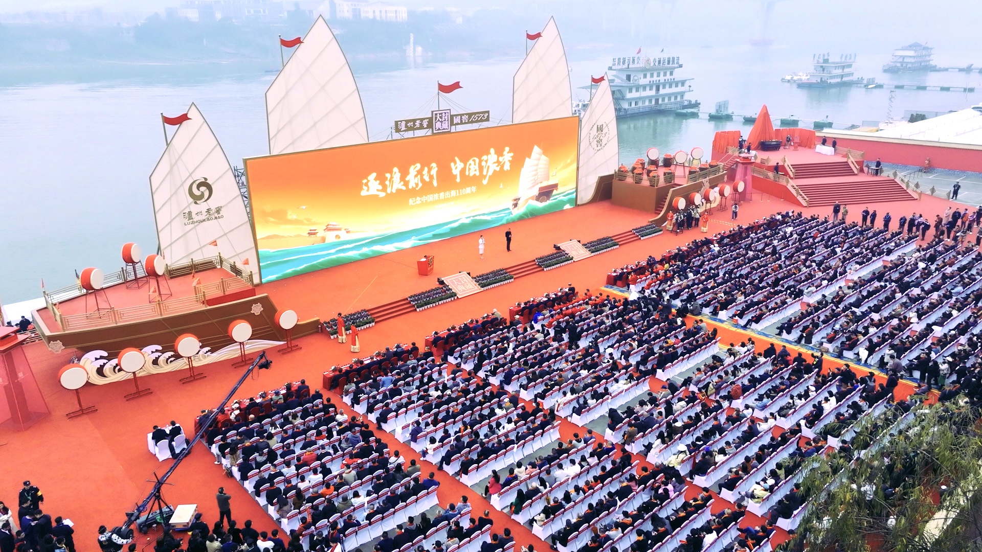 圖為現(xiàn)場演繹還原瀘州老窖榮獲太平洋萬國博覽會(huì)金獎(jiǎng)消息傳回瀘州的情形