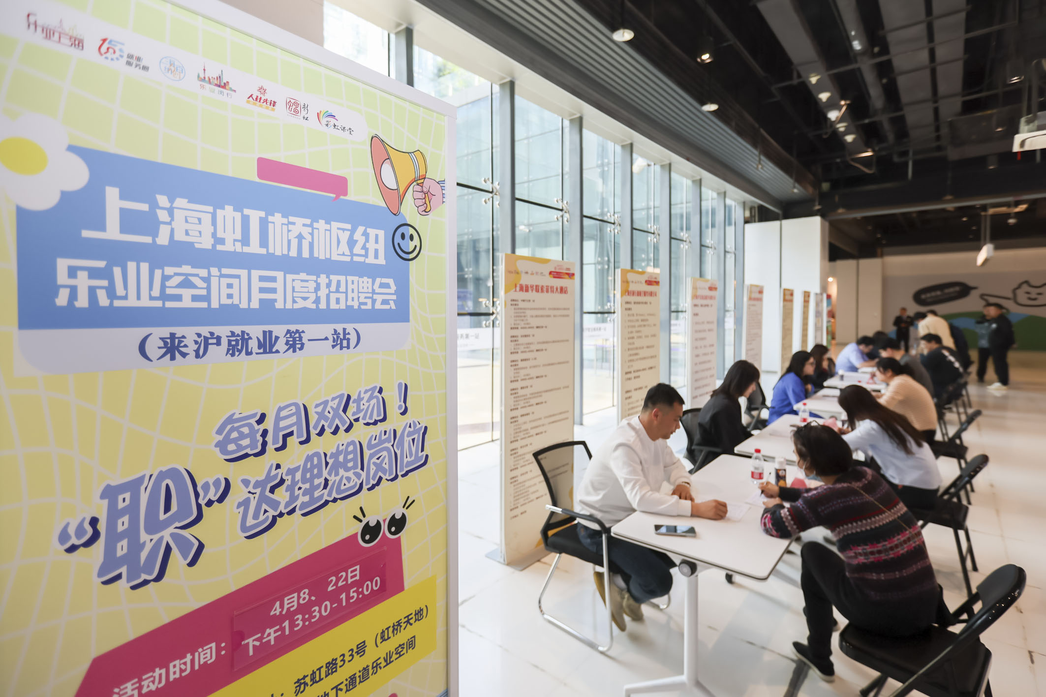 這是4月8日拍攝的上海虹橋樞紐樂(lè)業(yè)空間月度招聘會(huì)現(xiàn)場(chǎng)。當(dāng)日,上海虹橋樞紐樂(lè)業(yè)空間舉行4月首場(chǎng)招聘會(huì)。該平臺(tái)為求職者提供“一站式”就業(yè)服務(wù),自運(yùn)營(yíng)以來(lái),累計(jì)完成求職登記200余人次,接聽(tīng)就業(yè)咨詢(xún)電話600余通,舉辦就業(yè)指導(dǎo)服務(wù)活動(dòng)17場(chǎng),服務(wù)群眾超3000人次。