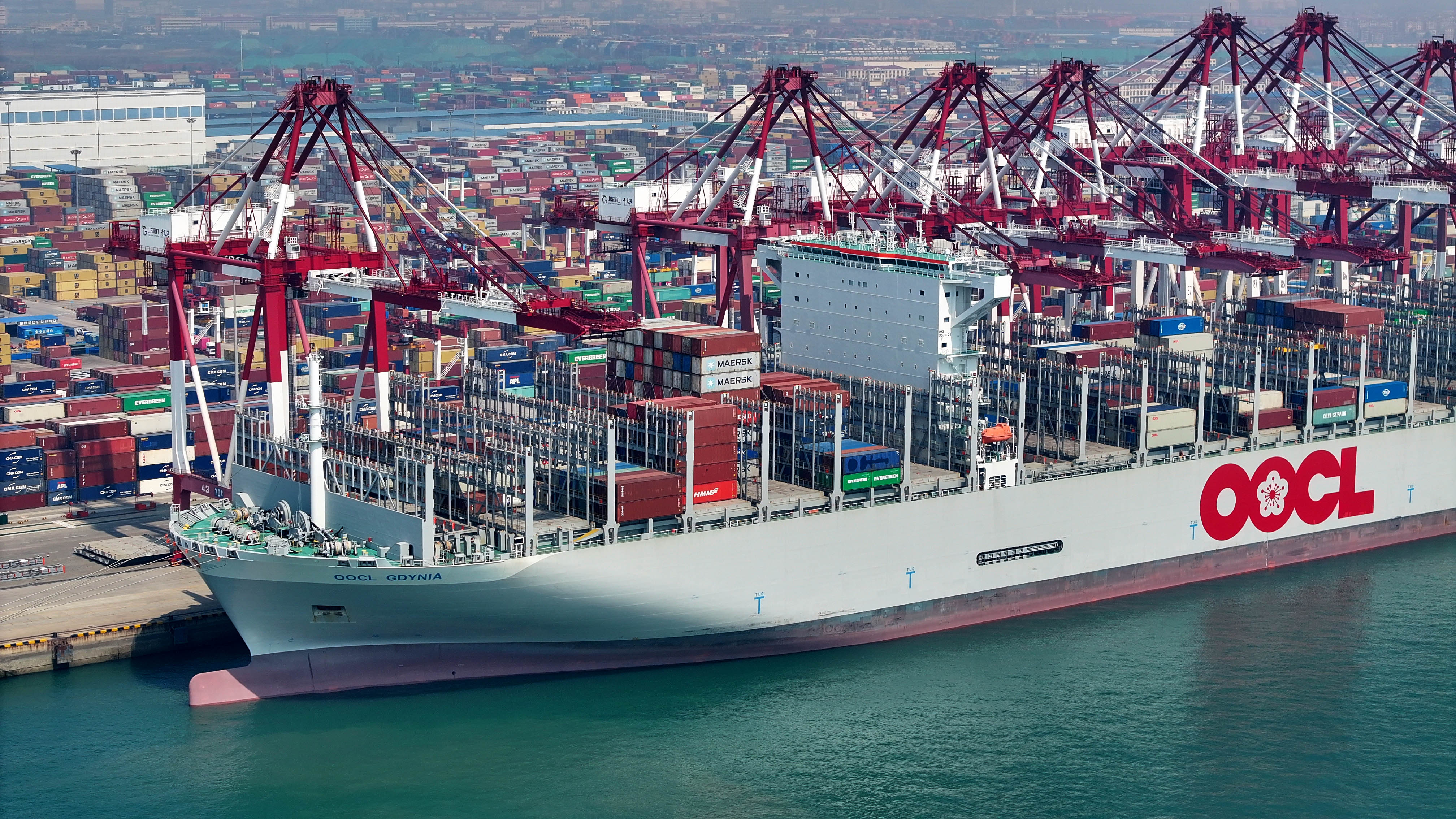 4月10日,一艘集裝箱貨輪在山東港口青島港前灣集裝箱碼頭進(jìn)行裝卸作業(yè)(無人機(jī)照片)。據(jù)山東省港口集團(tuán)有限公司統(tǒng)計(jì)數(shù)據(jù)顯示,2025年一季度,該集團(tuán)的貨物吞吐量、集裝箱吞吐量同比增長分別超過4%、7%,展現(xiàn)出強(qiáng)勁的發(fā)展動(dòng)能和韌性。