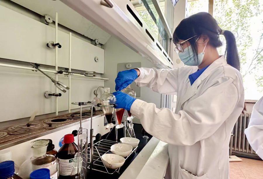 鴻茅藥業(yè)實(shí)驗(yàn)室工作人員進(jìn)行藥液檢測(cè)