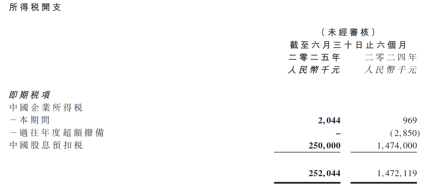 整體來(lái)看,盡管華晨中國(guó)今年上半年實(shí)現(xiàn)凈利增長(zhǎng),但核心因素卻是稅收開(kāi)支同比減少所致。報(bào)告期內(nèi),公司所得稅開(kāi)支為2.52億元,去年同期則為14.72億元,由此本期同比減少82.88%。減少的原因是華晨中國(guó)附屬公司2024年上半年支付了大額的股息預(yù)扣稅14.74億元,而今年上半年的股息預(yù)扣稅大幅降至2.50億元。