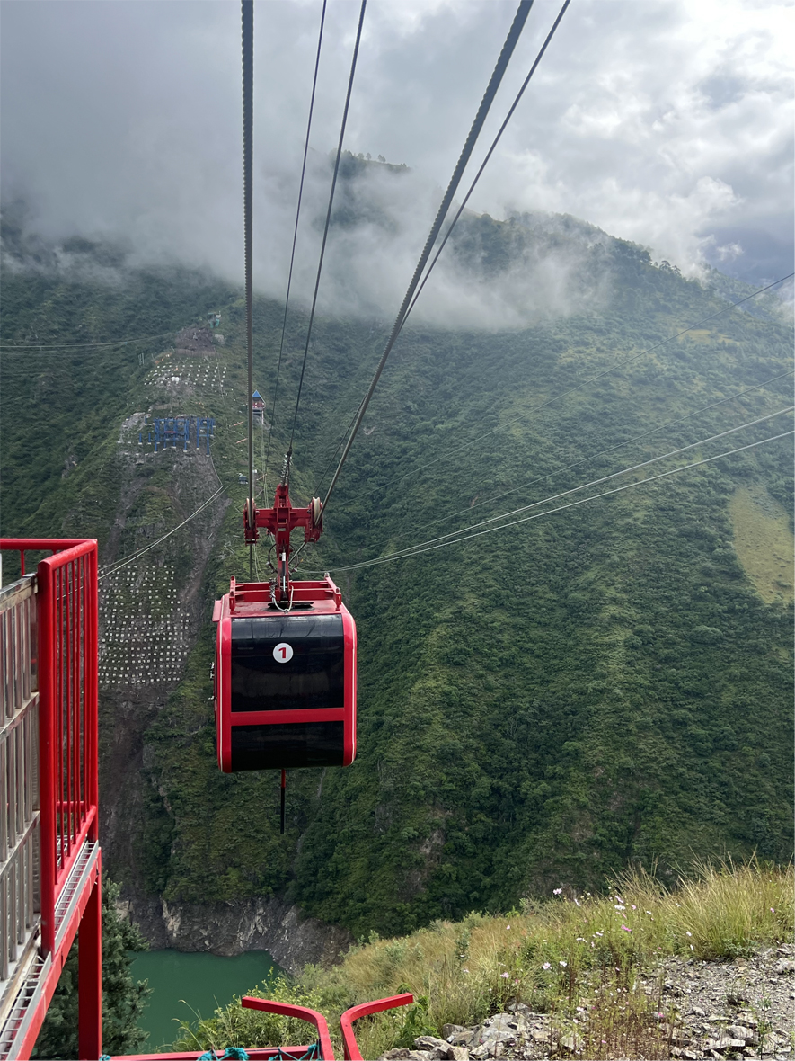 如今,理塘河特大橋已完成6個(gè)施工平臺(tái)建設(shè),運(yùn)送施工人員的纜車3分半鐘就能跨越河谷。