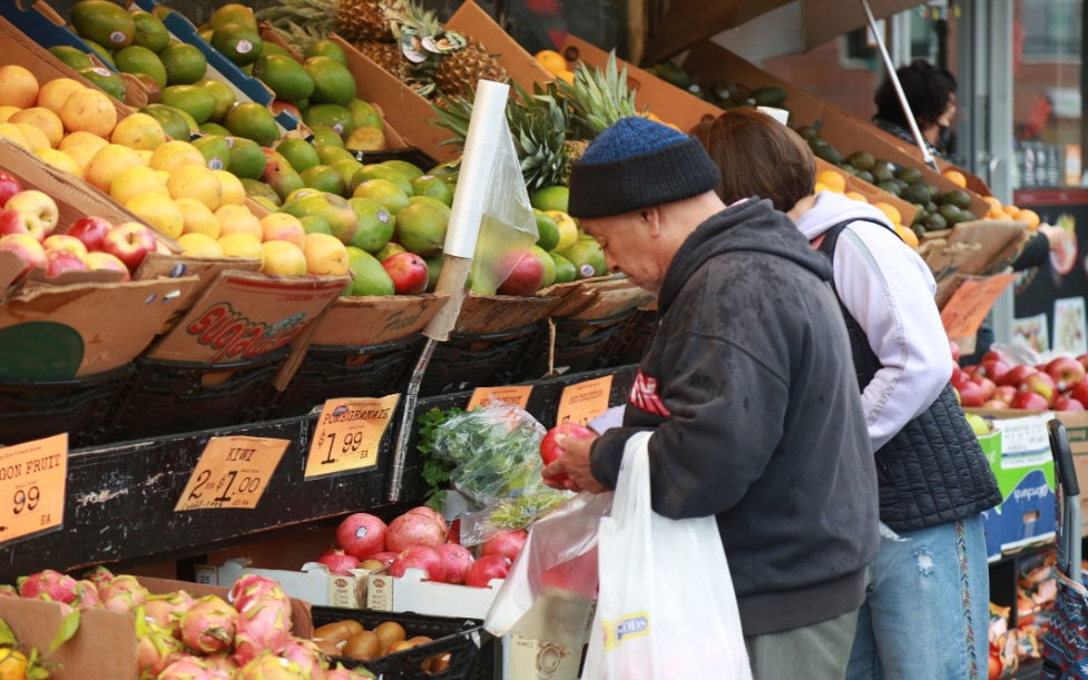圖為顧客在美國紐約一家超市挑選水果。(資料照片)