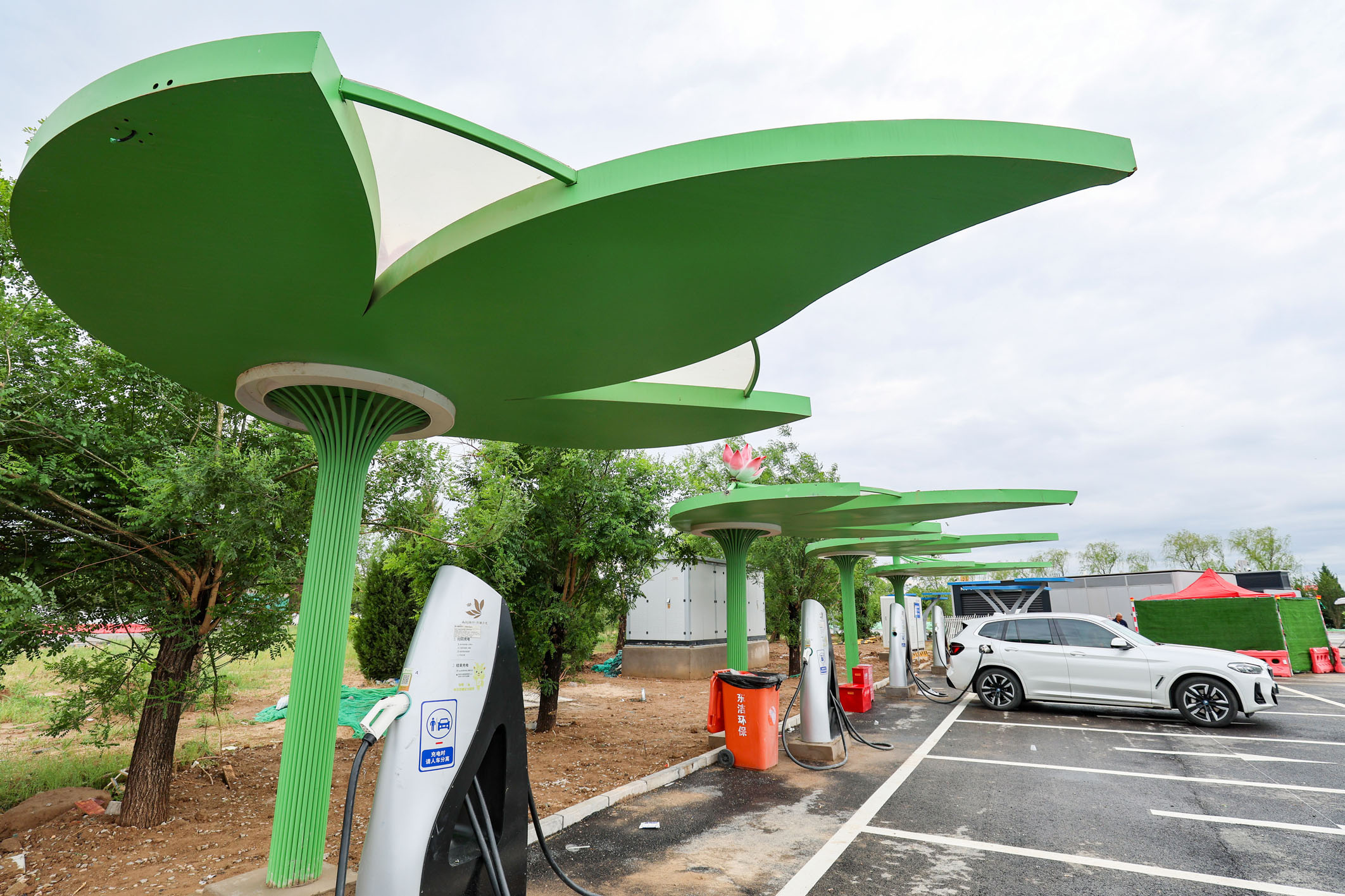 圖為新能源車輛在京港澳高速河北段石家莊東服務(wù)區(qū)的充電區(qū)域充電。(資料照片)