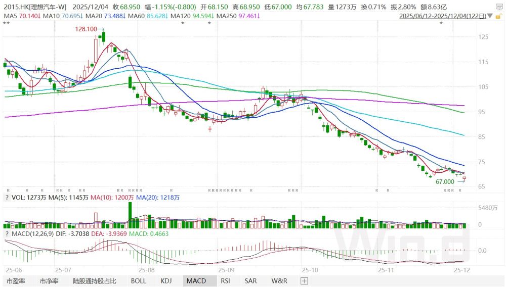 圖:理想汽車近期股價(jià)持續(xù)下跌 資料來源:Wind