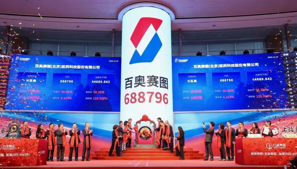 12月10日,百奧賽圖(北京)醫(yī)藥科技股份有限公司(百奧賽圖,688796.SH)成功在上海證券交易所科創(chuàng)板掛牌上市。這是百奧賽圖繼2022年9月1日登陸香港聯(lián)合交易所(02315.HK)后,在深化資本市場布局、提升企業(yè)價值上邁出的關鍵一步,標志著公司成功構建H+A雙平臺上市格局。
