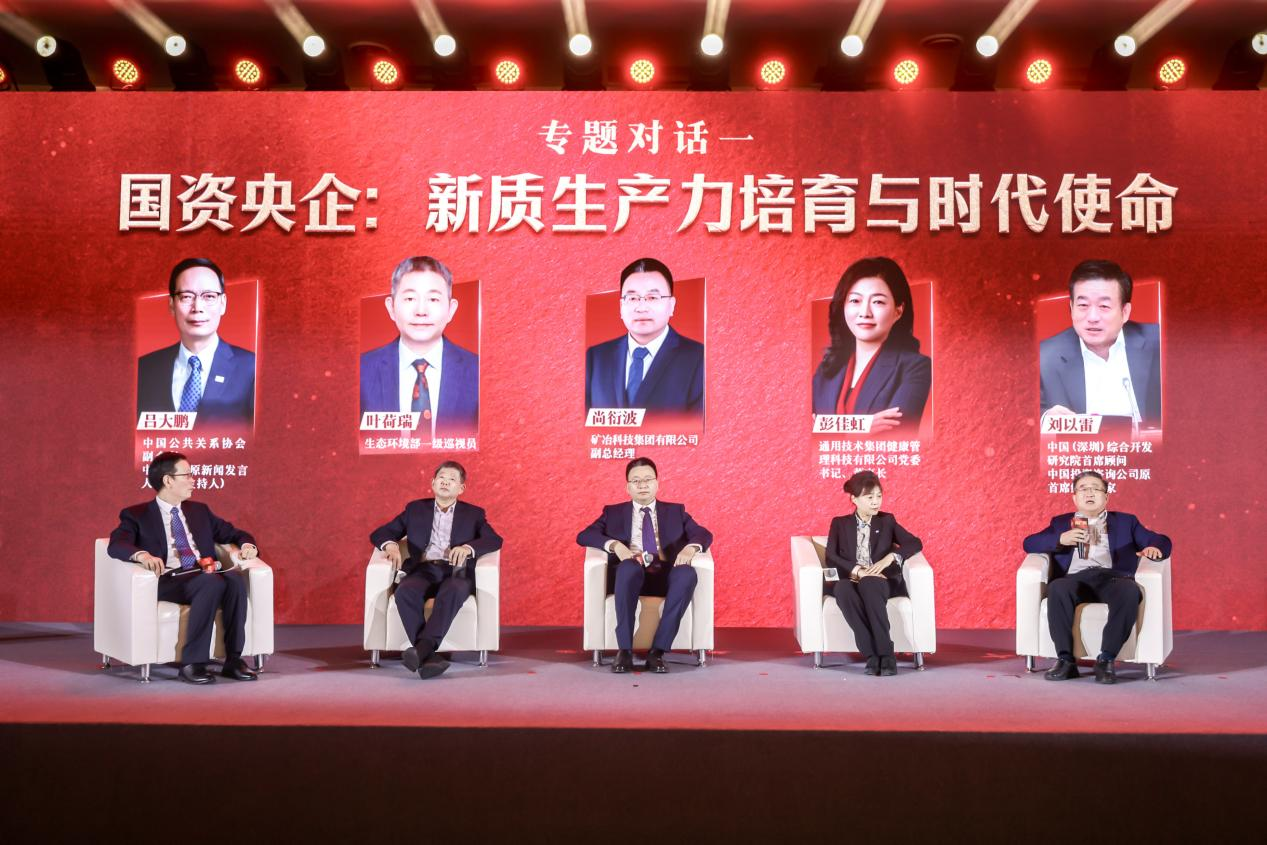 在“國資央企:新質生產(chǎn)力培育與時代使命”專題對話中,生態(tài)環(huán)境部一級巡視員葉荷瑞,礦冶科技集團有限公司副總經(jīng)理尚衍波,通用技術集團健康管理科技有限公司黨委書記、董事長彭佳虹,中國(深圳)綜合開發(fā)研究院首席顧問劉以雷,中國公共關系協(xié)會副會長呂大鵬圍繞綠色發(fā)展轉化、產(chǎn)業(yè)轉型升級、健康服務普惠、企業(yè)治理優(yōu)化等核心議題作了分享。