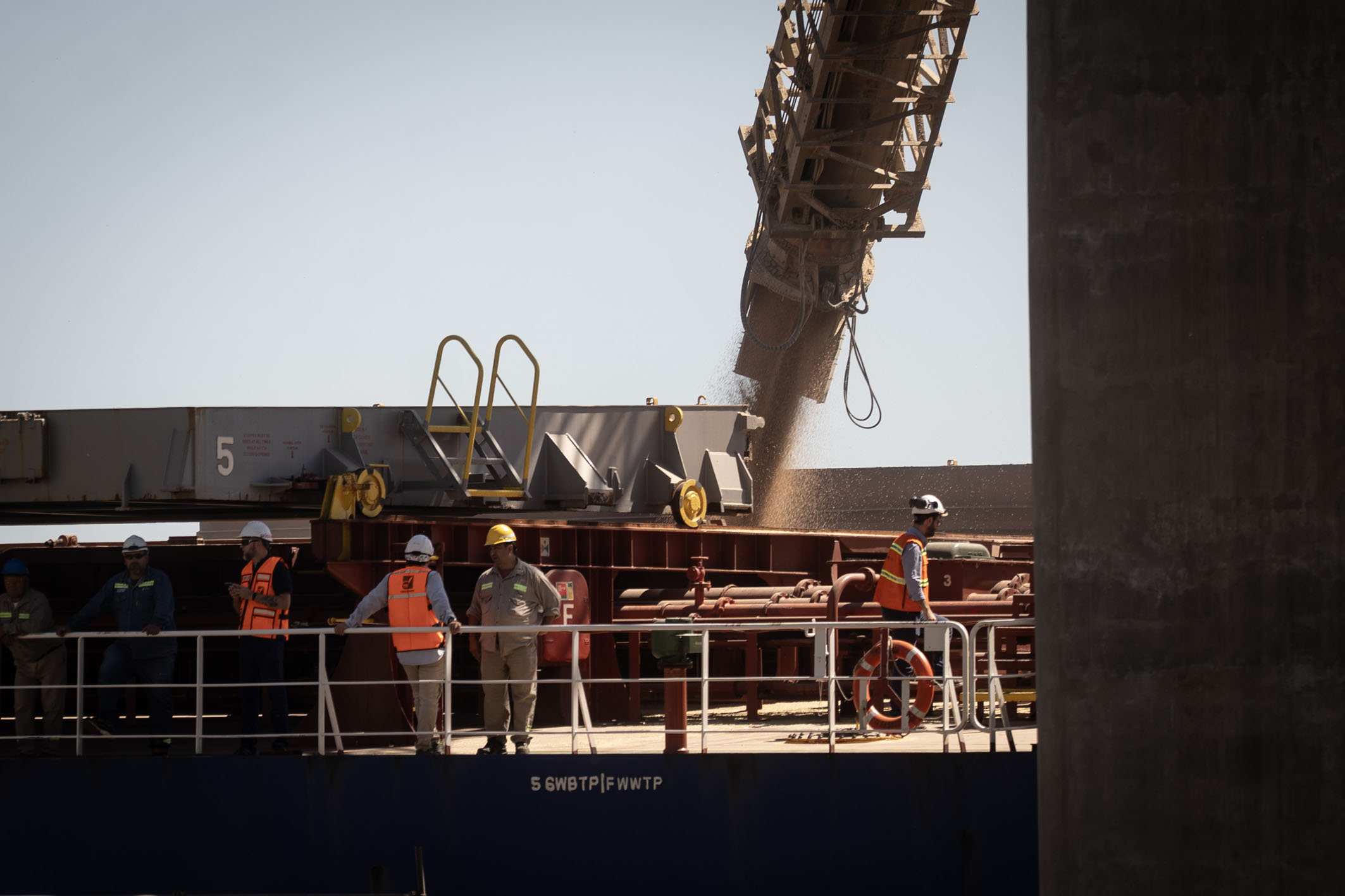 一艘裝載6.5萬噸阿根廷小麥的貨輪近日從該國(guó)圣菲省廷布埃斯港啟航前往中國(guó)。這是阿根廷2024年1月獲得對(duì)華小麥出口資質(zhì)后首次向中國(guó)開展小麥商業(yè)出口。圖為在阿根廷圣菲省廷布埃斯港,工作人員在一艘裝載阿根廷小麥的貨輪旁工作。