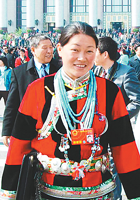 自從2003年當選十屆全國人大代表以來,這樣的場面她見多了,已經(jīng)看不到當年一說話就紅臉低頭的羞澀。 “我是沾了珞巴族的光!睍约t說,“每次到北京開會,我都會提醒自己,我代表的是一個民族,我是珞巴族的唯一代表。一想到這兒,就會產(chǎn)生一種神圣感!” 珞巴族,中國人口最少的一個民族,只有3000人左右,主要分布在西藏東起察隅、西至門隅之間的珞瑜地區(qū),有自己的語言,沒有本民族文字,長期保留著刻木結繩記數(shù)記事的原始方法!扮蟀汀笔遣刈鍖λ麄兊姆Q呼,意為“南方人”。 曉紅說:“過去,珞巴族屬于被壓迫的民族,長期偏居深山,新中國成立后才翻身做主,正式定名為珞巴族。從那時起,珞巴族人和西藏其他少數(shù)民族一樣,也獲得了與藏族人同等的政治、經(jīng)濟和人身自由的權利,歷屆全國人大和全國政協(xié)都為我們各保留一名代表和委員的名額! 珞巴族人只有名,沒有姓,曉紅的全名就叫曉紅。曉紅的父母都是當?shù)冂蟀妥遛r民。1996年,她從西藏農牧學院畢業(yè)后,被分配到林芝地區(qū)米林縣米林鎮(zhèn)政府工作,4年后被任命為副鎮(zhèn)長,2005年7月起擔任米林縣南伊珞巴民族鄉(xiāng)鄉(xiāng)長。她務實、能干,在當?shù)乜诒芎谩?BR> “這幾年,我利用參加全國兩會的機會,直接向國家領導人反映珞巴族人的意愿,這是以前想都不敢想的事。”曉紅話語里充滿了自豪。在她家,還有一位“名人”:公公達登連續(xù)當選九屆、十屆全國政協(xié)委員。 “我能再次當選全國人大代表,既是珞巴族人的榮耀,也說明黨和國家對少數(shù)民族的關心和重視!睍约t告訴記者,五年前她提出的有關西藏米林縣南伊珞巴民族鄉(xiāng)的公路、電、房、通信等基礎設施建設問題,目前已全部解決。