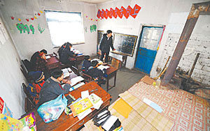 1998年,鐵力市調(diào)整學(xué)校布局,決定撤消工農(nóng)中心校下屬的蘭河小學(xué),由政府提供交通費讓學(xué)生去離蘭河村不到5公里的勝利小學(xué)讀書,但還有14名學(xué)生因貧困、單親或智障及無人照料不能去就讀。工農(nóng)中心校于是決定保留蘭河小學(xué)為下伸教學(xué)點,蘭河小學(xué)教師仲威平主動留下,在一間不足20平方米的教室內(nèi)辦起了復(fù)式教學(xué)班。10年來,仲威平多次放棄調(diào)動機會,克服病痛,每天騎車兩個多小時往返家與學(xué)校之間,一人擔(dān)當(dāng)了學(xué)校所有的教學(xué)、后勤工作,讓一批又一批的學(xué)生在小小課堂中汲取知識的養(yǎng)分,快樂成長。新華社記者