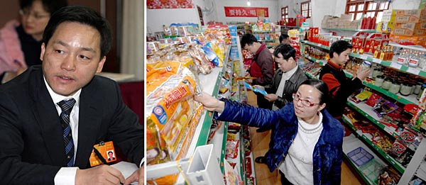 全國政協(xié)委員李立新(左圖)建議在全國實施“連鎖超市、放心店進鄉(xiāng)村”工程。有關部門出臺相應政策,引導扶持連鎖企業(yè)向農(nóng)村發(fā)展,開設連鎖超市、連鎖便利店,嚴把商品準入關。