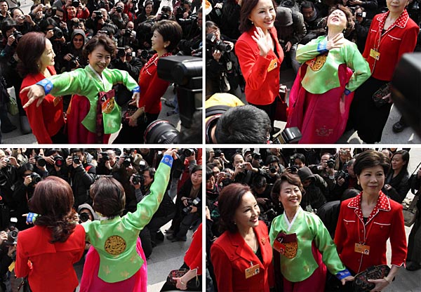 3月14日,中國人民政治協(xié)商會(huì)議第十一屆全國委員會(huì)第一次會(huì)議在北京人民大會(huì)堂閉幕。這是李承淑委員(朝鮮族)走出會(huì)場后面對(duì)眾多鏡頭欣然起舞。新華社記者 張燕輝 攝