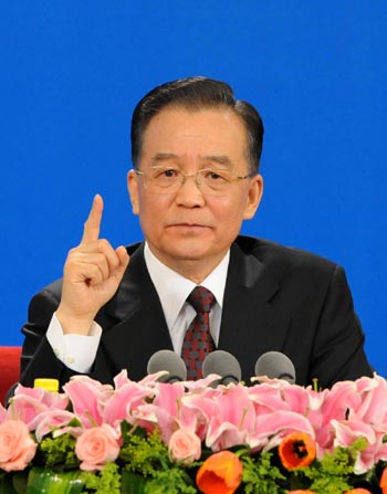 | 國務(wù)院總理溫家寶回答記者提問。 新華社記者 蘭紅光