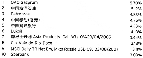 投資目標(biāo):主要投資于巴西、俄羅斯、印度和中國(guó)公司的股票證券。 資產(chǎn)分布:30%以上在中國(guó),近30%在巴西,20%~30%在俄羅斯,10%左右在印度。 管理年費(fèi):1.5%。 風(fēng)險(xiǎn)評(píng)測(cè):風(fēng)險(xiǎn)系數(shù)較高。“金磚四國(guó)”的股票市場(chǎng)在整個(gè)新興市場(chǎng)甚至是全球市場(chǎng)上扮演著越來越重要的角色,增長(zhǎng)和上升潛力相對(duì)成熟市場(chǎng)更出色!敖鸫u四國(guó)”的股票市場(chǎng)之間的相關(guān)性較低,因此比投資于單一國(guó)家的股市更能有效分散風(fēng)險(xiǎn)。