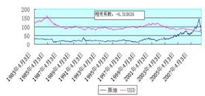 圖3是原油和美元的相關系數(shù)圖,數(shù)據(jù)記錄是從1983年4月到2008年12月。