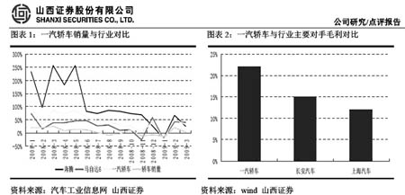 根據(jù)汽車工業(yè)協(xié)會(huì)資料,2009年1-4月,馬自達(dá)6實(shí)現(xiàn)銷量2.7萬(wàn)輛,同比增長(zhǎng)15%;奔騰B70實(shí)現(xiàn)銷量1.7萬(wàn)輛,同比增長(zhǎng)18%。遠(yuǎn)高于2.0升<排量2.5升乘用車市場(chǎng)1-4月銷量同比衰退9%的增速,顯示出較強(qiáng)的市場(chǎng)競(jìng)爭(zhēng)力。隨著新馬6和奔騰B50的上市,機(jī)構(gòu)普遍預(yù)計(jì),新車型將繼續(xù)推動(dòng)一汽轎車的業(yè)績(jī)?cè)鲩L(zhǎng)。