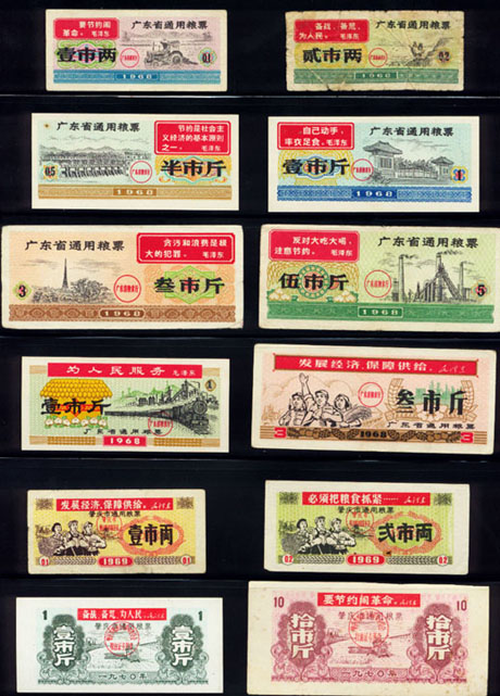 “文革”糧票大多出現(xiàn)在1967年~1972年,一般具有以下特點(diǎn):首先是幾乎所有的“文革”糧票上都使用了“革命委員會(huì)”印章;其次是大部分“文革”糧票上都印有毛澤東、林彪的語錄,當(dāng)年除了全國糧票中沒有“語錄”票外,全國各省、市、縣、區(qū)、鎮(zhèn)幾乎都發(fā)行過“語錄”糧票;第三是很多“文革”糧票上都印有工農(nóng)兵高舉《毛澤東選集》和紅太陽大放光芒等圖案。由于“文革”糧票是“文革”動(dòng)亂年代的“紀(jì)實(shí)文學(xué)”,具有現(xiàn)代文物的性質(zhì),因此備受收藏愛好者的青睞,其價(jià)格也一直高于其它時(shí)期發(fā)行的糧票。與郵票和錢幣收藏一樣,“文革”糧票里價(jià)值最高的是沒有公開發(fā)行過的樣票,如:1969年版湖北省集體用糧定額糧票(樣票),全套3枚,面額分別為50斤、100斤、500斤,市場(chǎng)參考價(jià)每套約為1000-1500元;還有江西省1968年版2斤錯(cuò)票,因票面上“備戰(zhàn)、備荒、為人民”中的“荒”字印錯(cuò)了,將上部的“芒”印成了“蕓”,有關(guān)部門責(zé)令將印好的票樣銷毀,但仍有不足10枚流落在外,現(xiàn)該票已成為江西省糧票中的特級(jí)珍品。但目前還有一些存世量較大的“文革”糧票售價(jià)并不高,如:四川長寧縣1969年1兩、2兩、半斤、10斤4枚一套的“語錄”糧票,現(xiàn)在四川的收藏市場(chǎng)里,每套僅售2-2.50元左右,其后市應(yīng)該看好。