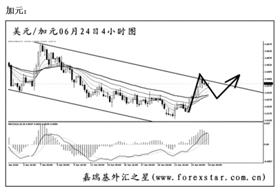 ▲美元兌加元運行到了下降通道的上沿,短線多頭動能強勁。本周前三個交易日美元兌加元均收出大陽線,調(diào)整的需求在逐漸加大。預計匯價最終升破通道上沿的希望很大,但在此將遭遇一定的走勢反復。操作上可以等待通道升破后再行入場做多。
