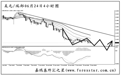 ▲美元兌瑞郎短線加速下跌,自高位下挫的力度強勁,現(xiàn)在在構筑次要節(jié)奏調(diào)整。圖中均線系統(tǒng)壓制排列,匯價距離下降趨勢線較遠,后市仍有繼續(xù)創(chuàng)新低的欲望。目前美元兌瑞郎距下方道氏理論強支撐1.0925已經(jīng)不遠,短線依舊看空,但預計直接跌破有一定難度。