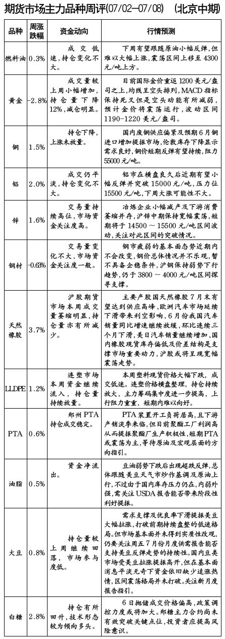期貨市場主力品種周評[07/02-07/08]
