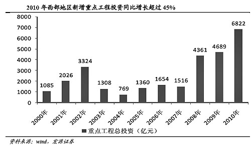 券商普遍認(rèn)為,西部大開(kāi)發(fā)投資項(xiàng)目的出臺(tái),“穩(wěn)增長(zhǎng)”的意圖明顯,是“保增長(zhǎng)”政策的延續(xù)。對(duì)股市有提振作用。 上海證券直接將西部大開(kāi)發(fā)新增投資計(jì)劃稱(chēng)為“縮小版經(jīng)濟(jì)刺激計(jì)劃”。 該券商發(fā)布的報(bào)告稱(chēng),當(dāng)前的6822億新增西部開(kāi)發(fā)投資計(jì)劃,是應(yīng)對(duì)海外危機(jī)不確定性演變的“縮小版經(jīng)濟(jì)刺激政策”。國(guó)內(nèi)外經(jīng)濟(jì)形勢(shì)的不確定性,增加了市場(chǎng)對(duì)中國(guó)經(jīng)濟(jì)二次探底的擔(dān)憂(yōu)。在當(dāng)前這種背景下,“新一輪經(jīng)濟(jì)刺激計(jì)劃”的出臺(tái),將極大增強(qiáng)市場(chǎng)對(duì)中國(guó)經(jīng)濟(jì)增長(zhǎng)持續(xù)性的信心。 國(guó)信證券表示,西部大開(kāi)發(fā)投資項(xiàng)目出臺(tái)對(duì)市場(chǎng)影響正面。