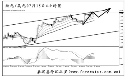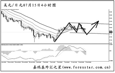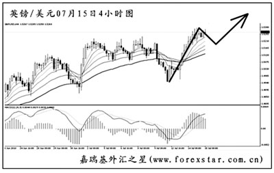 ▲英鎊兌美元雖然跌破了此前4小時(shí)圖的上升通道下沿,但很快匯價(jià)再度創(chuàng)出新高,上漲勢(shì)頭保持良好。日線圖上看,英鎊上方的強(qiáng)阻力在今年4月中的高點(diǎn)1.5525,還有一定的上漲空間可供利用。短線等待良好的調(diào)整節(jié)奏出現(xiàn)后繼續(xù)做多英鎊。