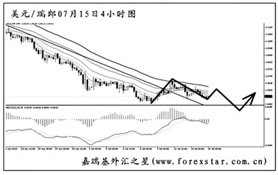 ▲美元兌瑞郎將下降趨勢(shì)線升破,目前在回探前方低點(diǎn),此前MACD出現(xiàn)了幾次明顯的底背離信號(hào),預(yù)計(jì)美元兌瑞郎將發(fā)生一波上行回調(diào),但幅度料將有限。圖中均線系統(tǒng)壓制匯價(jià),后市再創(chuàng)新低的概率較大。由于日線圖強(qiáng)支撐在1.0435,美元兌瑞郎下跌的空間并不廣闊。