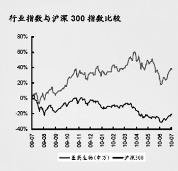 華林證券發(fā)布報告稱,雖然7月上旬至中旬,醫(yī)藥板塊表現一直弱于大盤,但是下旬開始,板塊表現稍強于大盤。從整月表現來看,醫(yī)藥板塊有近14%的漲幅,上演了大跌過后的估值修復行情。前期行業(yè)利空政策有所消化,加上主要公司中報業(yè)績良好,市場對醫(yī)藥行業(yè)的前景仍存較高的預期。 華泰證券提供的數據顯示,7月1日至8月6日,醫(yī)藥生物指數和滬深300醫(yī)藥指數分別環(huán)比上漲了13.5%和14.8%,相對A股走勢分別超越了2.6和4個百分點。以2008年10月份為基點進行對比,醫(yī)藥生物指數和滬深300醫(yī)藥指數至今已分別上漲了155%和147%。