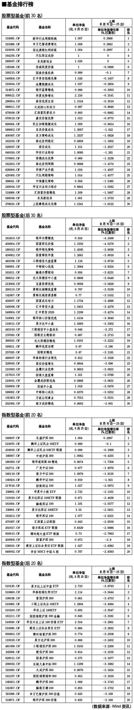 股票型基金排行榜[2010-08-27]