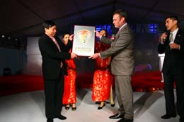 英國(guó)蓮花工程向青年汽車集團(tuán)董事局主席龐青年授牌。