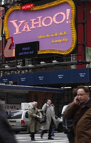 | 7日,行人從美國紐約時代廣場上的雅虎標志牌前走過。雅虎當天正式回應(yīng)微軟方面的“最后通牒”,稱其提供的446億美元收購價過低,因而拒絕此報價。新華社/路透 | 雅虎公司7日正式對微軟公司發(fā)出的“最后通牒”予以回應(yīng),表示如果微軟能夠出更高的價格,將會同意收購;否則,堅決不接受“低于雅虎價值”的報價。同時,雅虎還認為,微軟的惡意收購不可能成功,稱這有悖于微軟此前表達的“友好交易”的原則。一時間,這樁互聯(lián)網(wǎng)業(yè)界廣為關(guān)注的并購案再次陷入僵局。