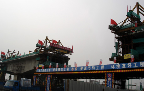 這是4月7日在江蘇昆山拍攝的滬寧城際鐵路施工現(xiàn)場(chǎng)。 截至目前,滬寧城際鐵路江蘇昆山段的架梁工程完成近半,滬寧城際鐵路雄姿初現(xiàn)。滬寧城際鐵路全線長(zhǎng)300公里,2008年7月1日開工建設(shè),建成后將采取公交化運(yùn)營(yíng),全線設(shè)置21個(gè)車站,通車后最小發(fā)車間隔可達(dá)每3分鐘一班。 (新華社發(fā))