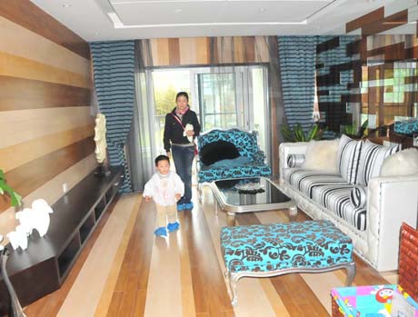 五一期間,一位貴陽市民帶著孩子在一家房產(chǎn)開發(fā)商的樣板房參觀。新華社記者 黃勇