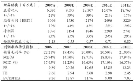 申銀萬國下調(diào)了中海油服日費率和使用率水平,將2009、2010年的業(yè)績預測由原先的0.86、1.10元下調(diào)為0.74、0.89元。2009年由于高位并購+行業(yè)景氣下滑,公司面臨一定壓力,不過目前油價已升至70美元/桶水平,盡管油價上漲對公司2009年業(yè)績影響不大,但申銀萬國認為如果下半年油價能維持在60-65美元/桶水平,公司10年的不確定性將會大大減少,11年三艘半潛式鉆井船投入以及深水項目的啟動將會給公司帶來較大增量。公司是適合長期持有的品種,基于對長期油價以及國內(nèi)油田服務行業(yè)看好,依然維持增持投資評級。 |