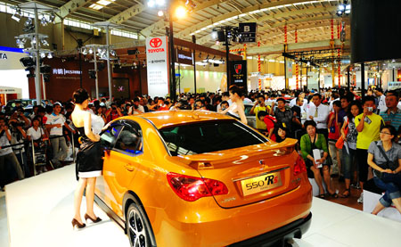 7月7日,模特在展示一款新車。當(dāng)日,第八屆中國沈陽國際汽車工業(yè)博覽會在遼寧沈陽國際會展中心舉行。本屆車展共吸引了200余家國內(nèi)外整車廠商和零部件企業(yè)參展,展出面積超過11萬平方米,參展車輛近600臺。