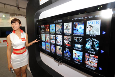 在日前舉行的2009中國國際消費電子博覽會(SINOCES)上,一位家電模特介紹遠程家庭數碼影院播放系統(tǒng)。 |