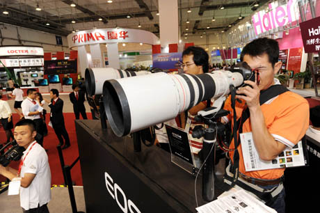 在日前舉行的2009中國國際消費電子博覽會(SINOCES)上,觀眾正在體驗專業(yè)數碼相機。本組照片均由新華社記者 李紫恒