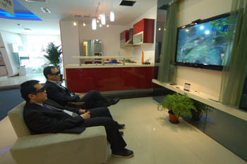 隨著上海世博會的開放,業(yè)內首家全面展示電視機發(fā)展歷史及未來技術發(fā)展方向的長虹視像博覽館也于4月29日正式開門迎客。 長虹“視博館”以全景式紀錄、描繪了中國電視工業(yè)發(fā)展的歷史、現(xiàn)在和未來,首次展示了與我們家庭生活緊密相關的電視機的“前世今生”,是中國百姓生活由貧至富的一個縮影。展館除了中國第一臺古董級老電視,還展示了長虹目前及未來將推出的最新技術、概念產(chǎn)品。 長虹“視博館”不僅在外觀上具有強烈的視覺沖擊力,各類產(chǎn)品的開放式互動體驗也讓觀者經(jīng)歷了一次未來科技的震撼。進入場館,吸引大眾目光的是從1972年的第一臺黑白電視到現(xiàn)在大屏幕平板電視的發(fā)展史;最讓人驚嘆的是在“歷史長廊”里展示的“古董級電視”。值得一提的是,這些電視最古老的有近半個世紀的歷史。 整個長虹視博館中,最令人震撼的莫過于長虹家庭3D電影院,這是長虹視博館的最大亮點。2010年南非世界杯將首次采用3D轉播,作為具有領先技術的長虹3D電視自然成為關注焦點。據(jù)悉,長虹的3D技術不僅被應用在顯示上,還會被融匯于體感游戲中。在整個展館中,最具人氣的就是家庭電視娛樂區(qū),體驗游戲電視強大的功能遠遠超過了參觀者的預期,不少消費者都在現(xiàn)場詢問產(chǎn)品正式上市的時間。 在其他區(qū)域,我們還看到很多其他非常有趣的電視科技應用體驗;而在“智慧家庭”區(qū)域,參觀者甚至可以像在自己家里一樣,隨意體驗使用各種高科技設備。據(jù)工作人員介紹:目前長虹已經(jīng)開發(fā)出了成套完整的技術平臺,只要市場環(huán)境成熟,這些產(chǎn)品都可進入大眾的生活當中。 行業(yè)資深表示,長虹“視博館”不只是一次對公眾的普通展示,它集中展現(xiàn)了中國電子工業(yè)52年的發(fā)展成果,是長虹52年持續(xù)技術創(chuàng)新的歷程再現(xiàn)。 |